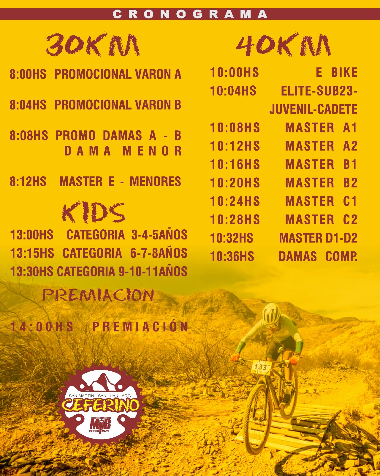 Las inscripciones estarán abiertas hasta el viernes 11 de octubre en bicicletería BEBOTE BIKE de 9 a 13 hs y en GARCÍA BIKE (Departamento de Albardón) de 16 a 21 hs. Los interesados podrán inscribirse y retirar su kit de corredor en el lugar y fecha indicados.