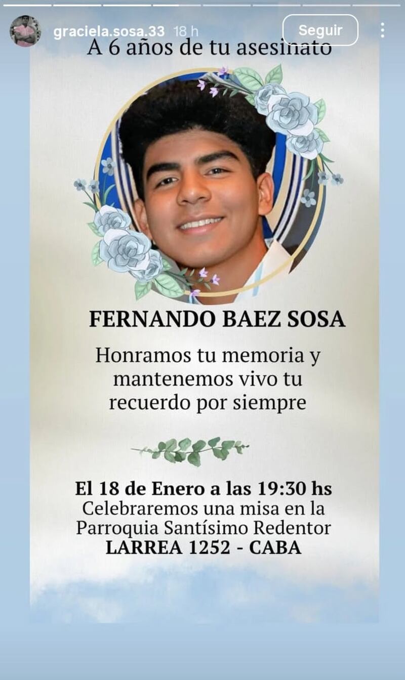 A seis años del brutal crimen de Fernando Báez Sosa en Villa Gesell, su madre Graciela Sosa realizó un emotivo mensaje en redes sociales, y volvió a reclamar que quede firme la condena a los ocho rugbiers responsables del asesinato.