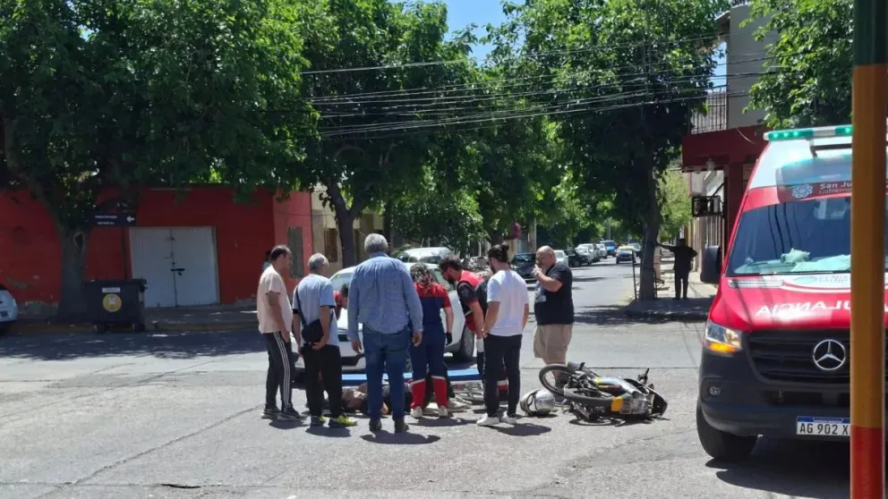 Según informaron fuentes policiales, el hombre —cuya identidad no trascendió— impactó contra un automóvil y sufrió un fuerte golpe en la cabeza. Además, presentó un episodio de mareo tras el siniestro. Por ello, fue asistido por personal del 107 y trasladado al Hospital Rawson para recibir atención médica especializada.