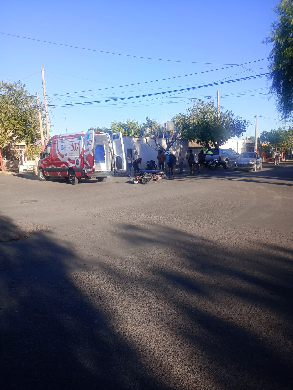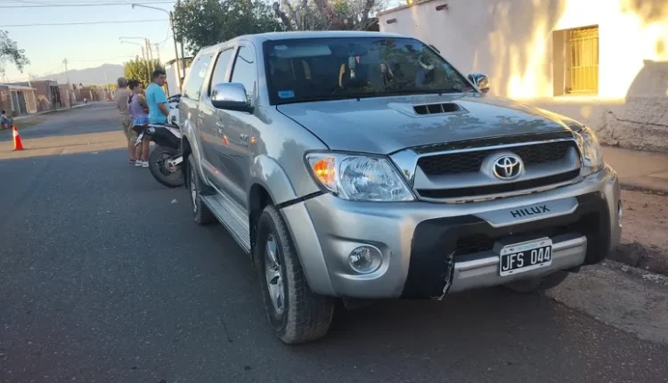Un accidente de tránsito ocurrió este lunes por la tarde en la intersección de calles Neuquén y Catamarca, en Chimbas. El siniestro tuvo lugar alrededor de las 18.40, cuando una camioneta Toyota Hilux y una motocicleta Guerrero Queen 150cc colisionaron, dejando como saldo dos personas hospitalizadas.