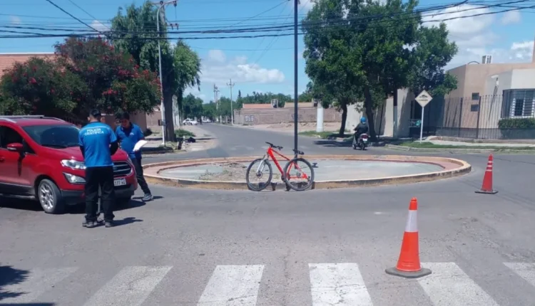 Esta mañana, se produjo un accidente en la rotonda de las calles Boggian y Las Palmas, en el barrio La Cabaña. Una ciclista fue hospitalizada tras el choque con una camioneta.