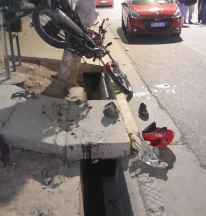 Accidente grave en Rivadavia: la moto terminó colgada en un basurero tras el fuerte choque