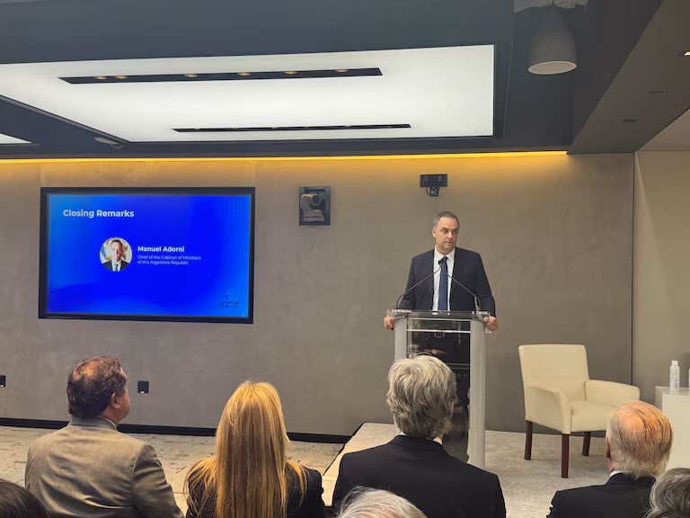 (Desde New York, Estados Unidos) Manuel Adorni cerró el ciclo Argentina Week instando a los empresarios que se sumen a la batalla cultural del gobierno. El jefe de Gabinete hizo su presentación en el Bank of America, que fue escenario del inédito evento oficial convocado para atraer inversiones privadas al país.