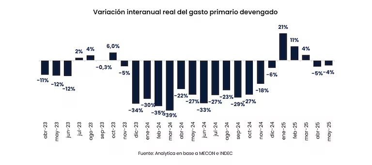 Así surge de los últimos datos elaborados en base a información oficial por parte de la consultora Analytica. Los números de mayo reflejan que hubo, por segundo mes consecutivo, una leve poda en comparación con el mismo mes del año anterior. El inicio del 2025 había estado marcado con un primer trimestre de expansión del gasto, principalmente por las jubilaciones que están indexadas a la inflación.