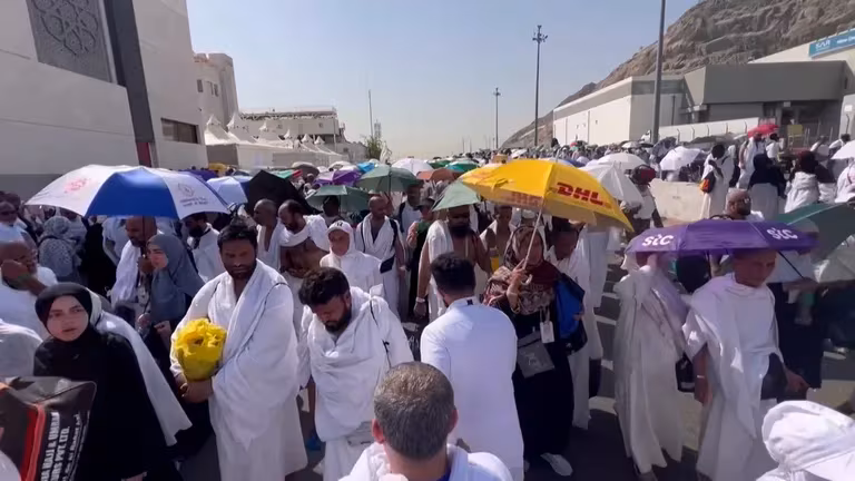 Los peregrinos luchan por refrescarse durante el haj en medio de informes de muertes relacionadas con el calor