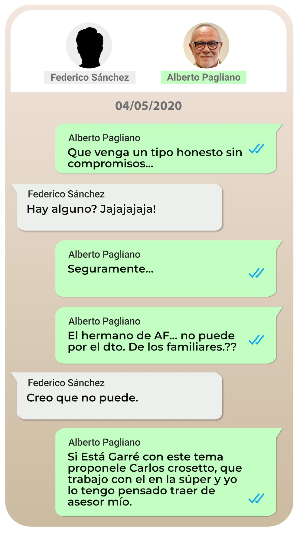 – Pagliano: Si está (Raúl) Garré con este tema proponele Carlos Crosetto, que trabajo con el en la súper y yo lo tengo pensado traer de asesor mío.