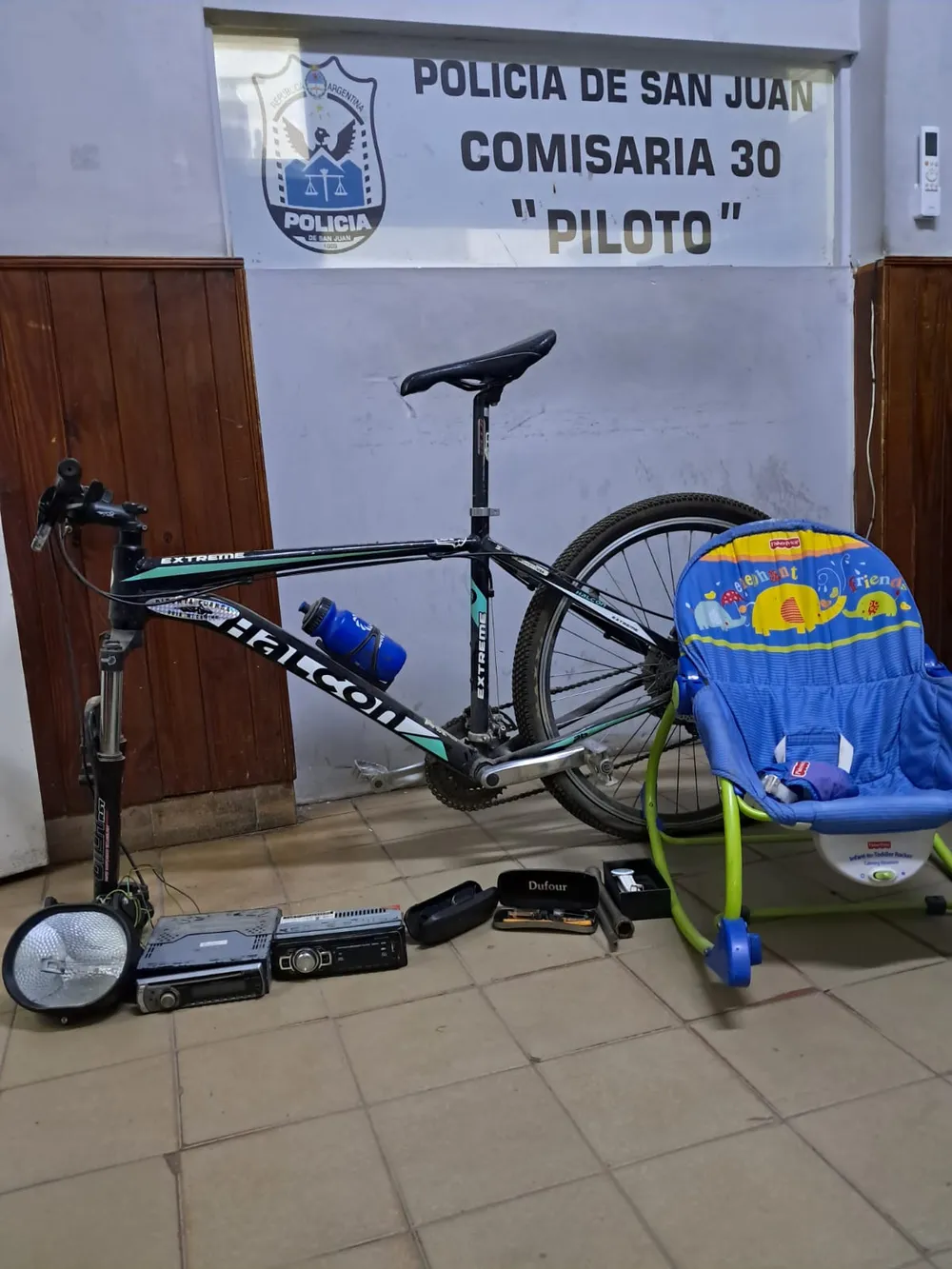 Además, se incautaron dos bicicletas: una marca Firebird rodado 29 de color rojo con detalles negros y otra marca Halcón modelo Extreme rodado 26, que presentaba faltantes en su estructura. También se encontró una silla mecedora de bebé y otros elementos de valor.