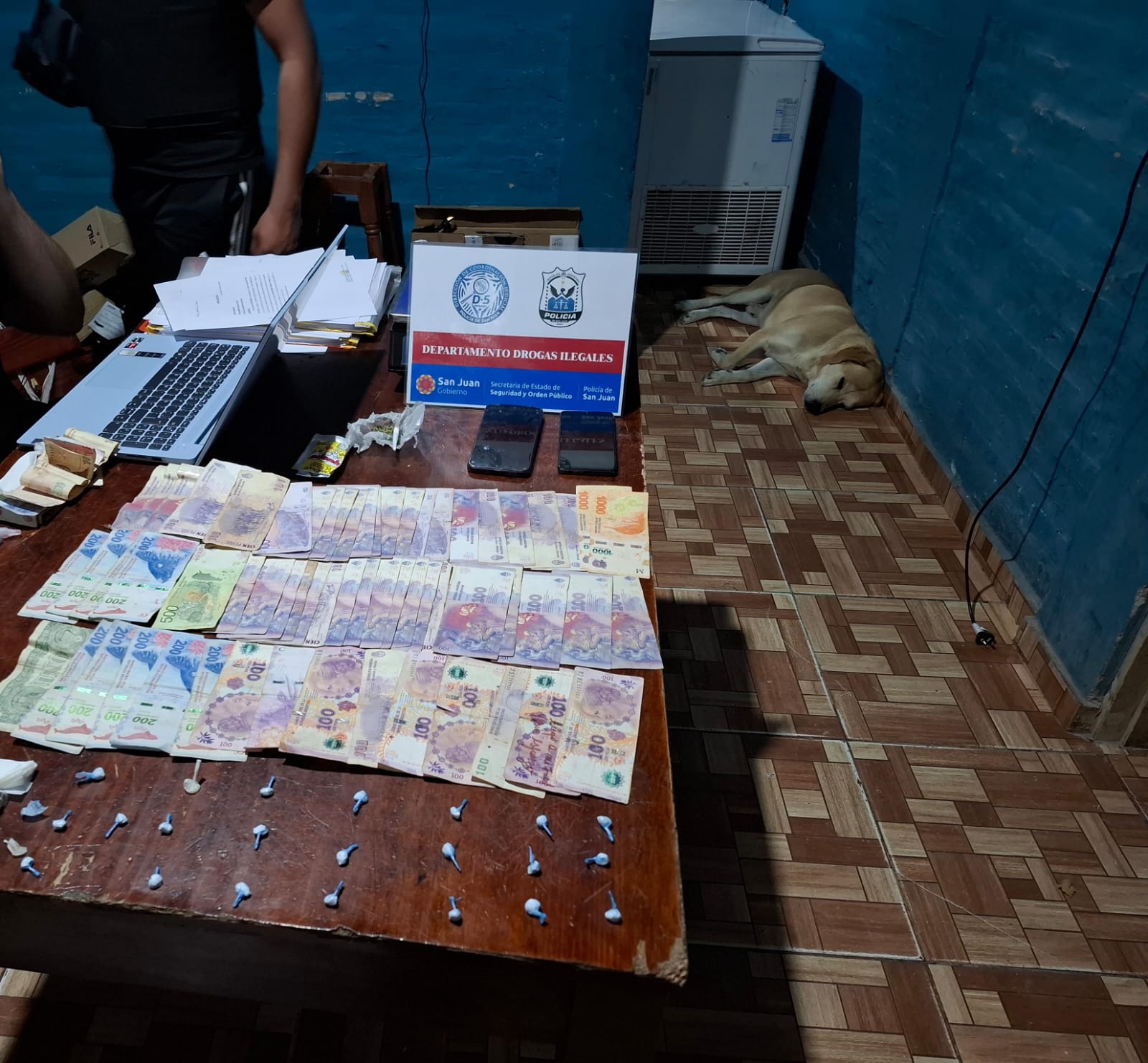 Durante el procedimiento, los efectivos hallaron 22 envoltorios de cocaína, marihuana, papeles de liar cigarrillos, $10.000 en efectivo y elementos de fraccionamiento, además de dos teléfonos celulares.