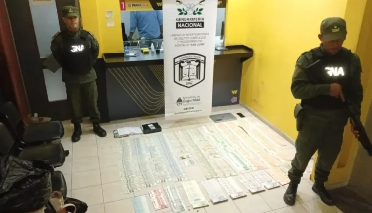 El operativo de Gendarmería se realizó en un local del centro sanjuanino por presuntas infracciones al Régimen Penal Cambiario. Incautaron dinero, tecnología y documentación clave.