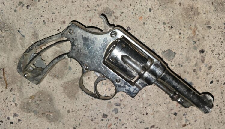 Minutos después, el operador del 911 comunicó que el automóvil gris había arrojado un revolver calibre 32 en la esquina de las calles Magallanes y Juan José Paso. La policía encontró el arma, un revólver Smith Wesson de color gris metalizado, en el lugar indicado.