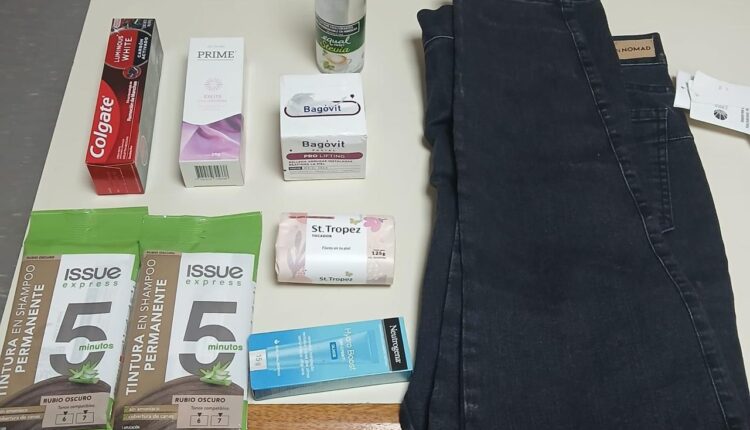 Según informaron fuentes policiales, la mujer escondió distintos artículos entre sus pertenencias e intentó retirarse del local sin abonarlos. Entre los productos se encontraban: un pantalón de jeans, dos tinturas de cabello, un jabón de tocador, un edulcorante, una crema de ácido hialurónico, un gel íntimo, una pasta dental y una crema facial.