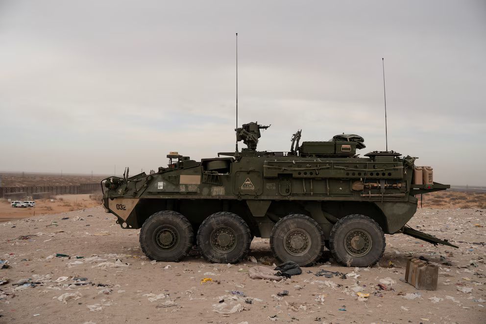 Un blindado Stryker de Estados Unidos vigila la frontera con México para evitar las operaciones de narcotráfico y el ingreso de indocumentados