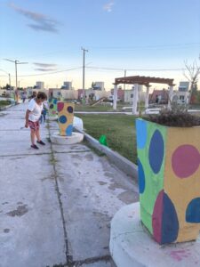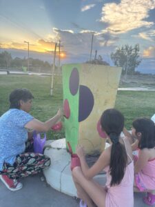En la Plaza del Barrio Filiberto Jofré II, distrito Dos Acequias, se desarrolló una jornada de embellecimiento que reunió a vecinas, vecinos, niñas y niños en una tarde de arte, encuentro y participación comunitaria.