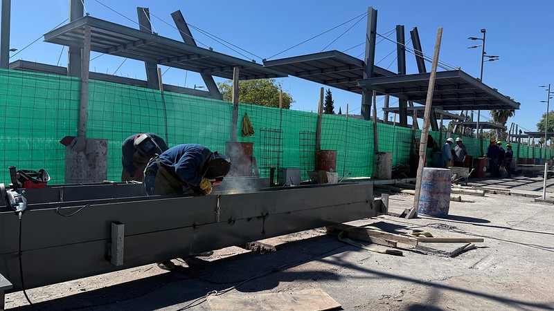 Además, ya fueron ejecutadas las bases de hormigón que funcionarán como soporte de las futuras cubiertas, junto con la colocación de las platinas de anclaje, elementos metálicos que permiten fijar las columnas con seguridad.