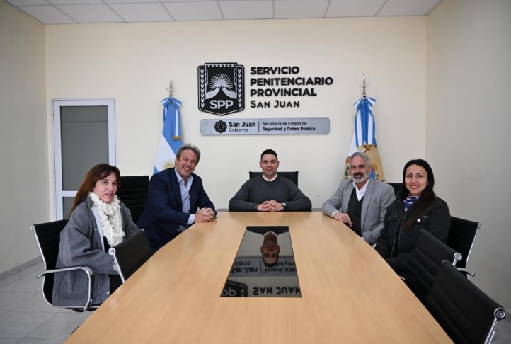 Sebastián Lusardi, director ejecutivo de Grupo L, y Marcelo Delbarba, director de Relaciones Institucionales, visitaron las instalaciones del Penal de Chimbas y mantuvieron una reunión con Carlos Suárez, director del Servicio Penitenciario; la Alcaide Mariela Medina, jefa de infraestructura y laborterapia; y la Oficial Principal Paula Bretillot, jefa de inclusión laboral.