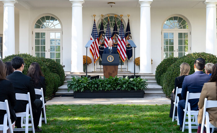 El presidente dio un discurso de apenas siete minutos, solo en el podio. Fue recibido por más de un minuto de aplausos de su equipo y de su nieta, que estaba en primera fila y a la que el mandatario envío un beso en el único gesto con emoción ante el público. Este ha sido probablemente uno de los discursos más difíciles para Biden, no solo porque tendrá que ceder el poder a Trump, a quien derrotó en 2020, sino también porque llega en un momento en que algunos miembros de su propio partido lo están señalando como responsable de la derrota de Harris.
