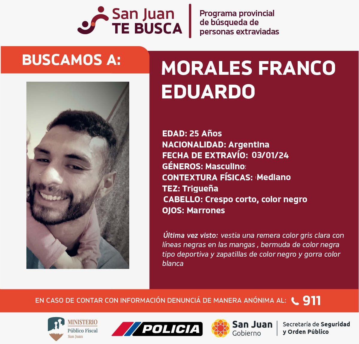 Dos jóvenes amigos, identificados como Facundo Correa (23) y Franco Morales (25), se encuentran desaparecidos desde hace doce días, cuando emprendieron un viaje como mochileros. Las autoridades han activado el Programa San Juan Te Busca a nivel nacional para intensificar la búsqueda de los mismos.