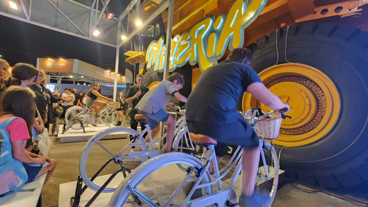 Camión fuera de ruta y juegos interactivos: así se vivió la apertura del stand minero en la FNS