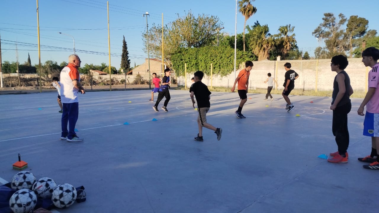 El profesor Moreno llevó adelante un entrenamiento enfocado en el trabajo físico y la velocidad, clave en el proceso de iniciación deportiva. Durante la práctica, los chicos realizaron ejercicios específicos mientras, en paralelo, el docente aprovechó para dialogar con los profesores, brindando consejos y una breve reseña sobre el control de la velocidad aplicada al fútbol.