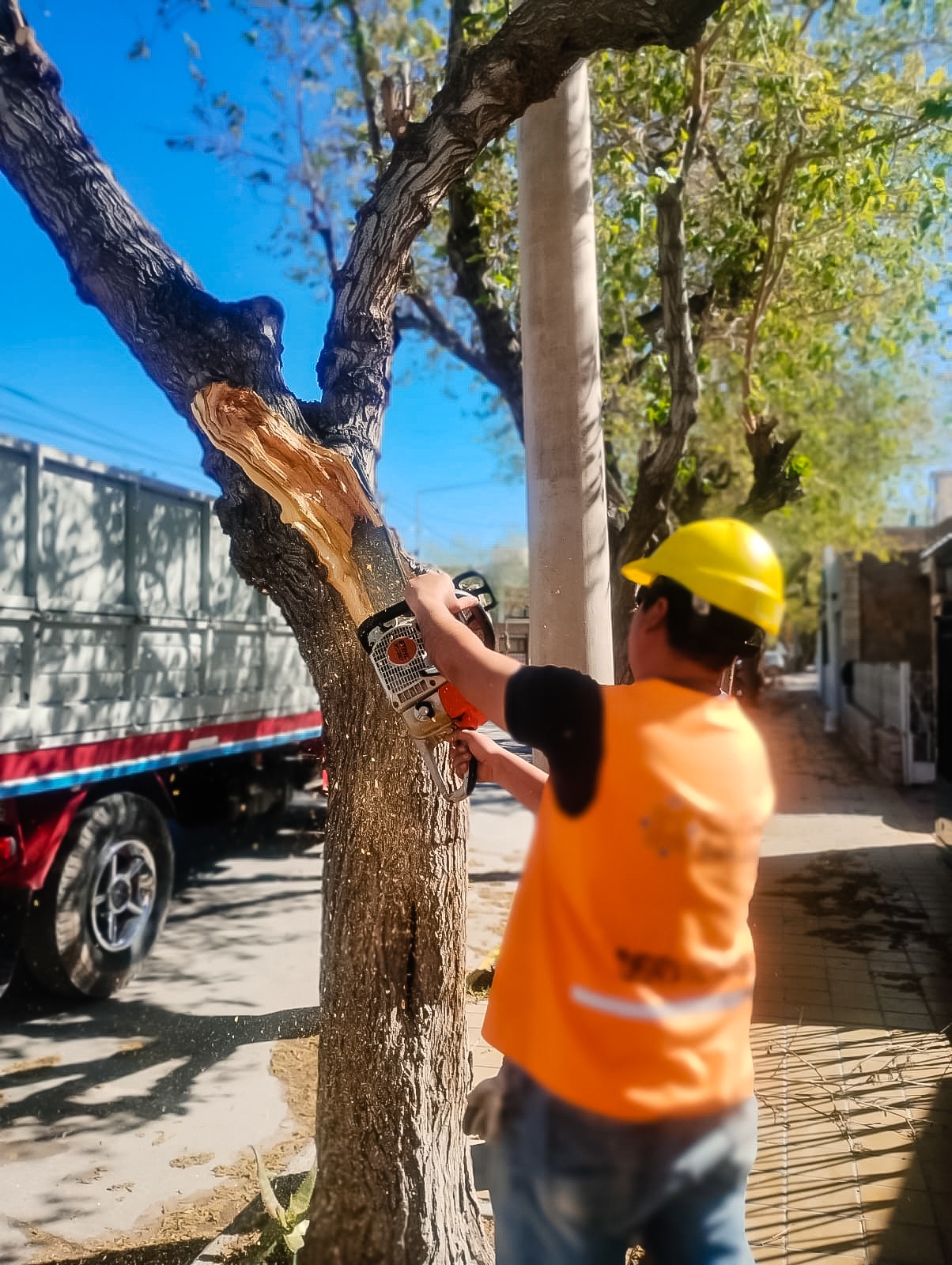 Tras el paso del intenso viento Zonda que afectó nuestra ciudad, los equipos de trabajo de la Secretaría de Ambiente y Servicios se han abocado a la tarea de restaurar el orden en nuestras calles y espacios verdes.