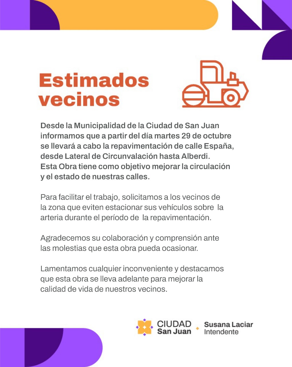 La Municipalidad de Capital ha anunciado que este martes darán inicio a los trabajos de repavimentación de la calle España, una de las arterias más transitadas de la ciudad. Las obras abarcarán desde el Lateral de Circunvalación hasta la calle Alberdi.