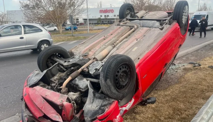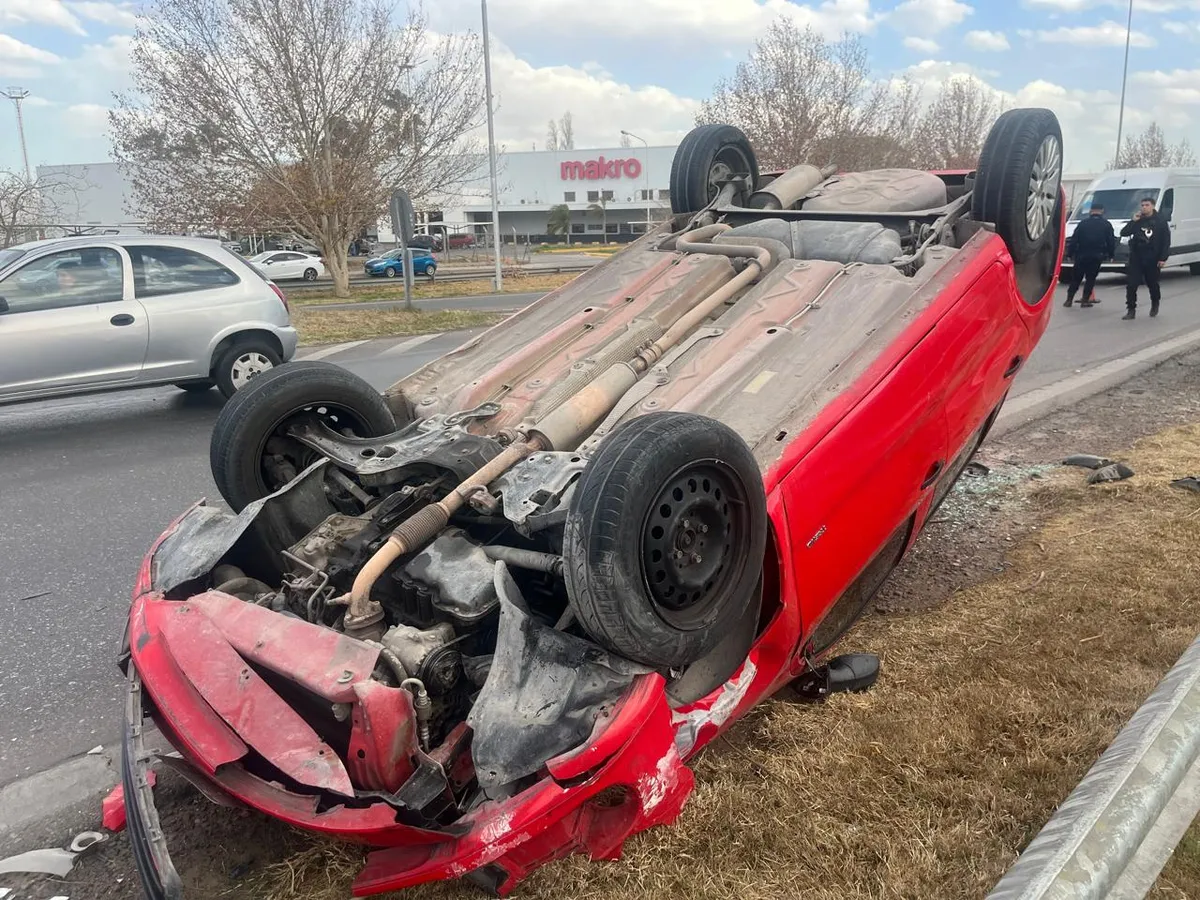 El accidente ocurrió a metros de Abraham Tapia. Un Volkswagen Gol fue impactado por otro vehículo, terminó contra el guardarrail y volcó. El conductor resultó con lesiones leves.
