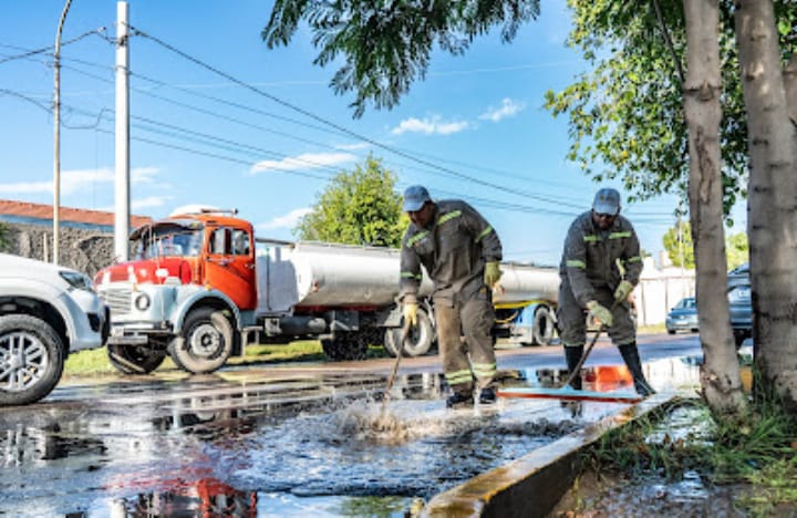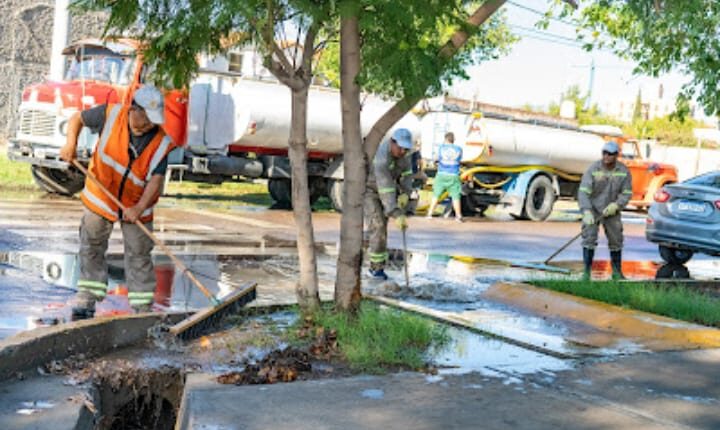 Debido a este fenómeno climatico, una cuadrilla de empleados del Servicio de Emergencia Municipal, dependiente de la Secretaría de Servicios, ha iniciado operativos de destaponamiento de acequias.