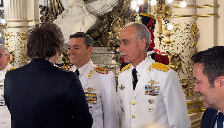 El presidente Javier Milei encabezó esta mañana la ceremonia de entrega de sables a integrantes de las Fuerzas Armadas. Allí estuvo junto al saliente ministro de Defensa, Luis Petri, y la cúpula militar, compuesta por el jefe del Estado Mayor Conjunto, Xavier Isaac; y los jefes de las fuerzas Carlos Presti (Ejército), Gustavo Valverde (Fuerza Aérea) y Carlos Alievi (Armada).