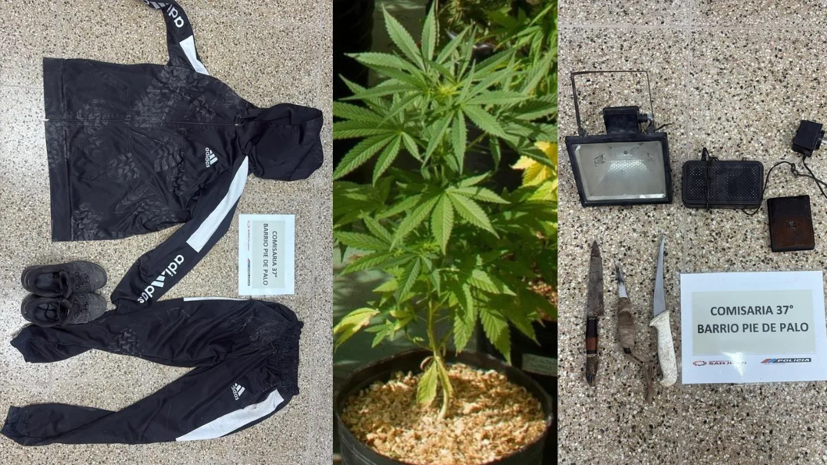 En el marco de una investigación por robo agravado, la Policía de la Comisaría 37° realizó allanamientos en el barrio Pie de Palo, en Caucete, que resultaron en la detención de dos jóvenes y el secuestro de diversos elementos, incluyendo una planta de marihuana.
