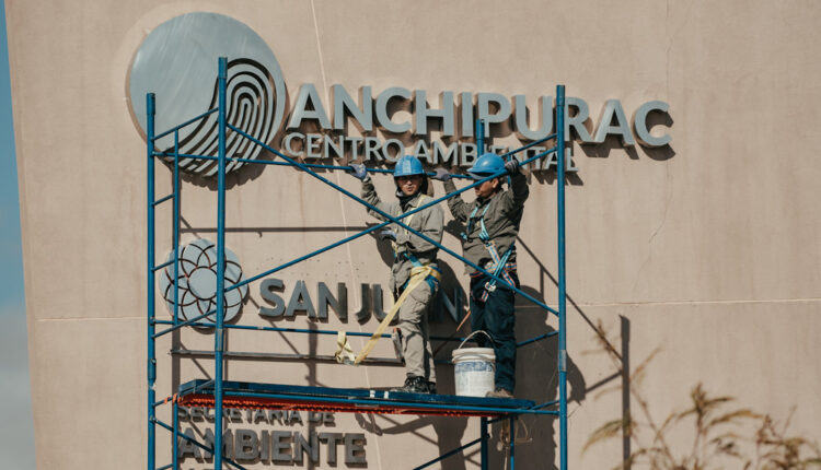 Trabajadores de la Secretaría de Ambiente utilizaron materiales recuperados de los residuos para construir el isologo del Gobierno de San Juan que ya luce en el ingreso al Centro de Formación Ambiental Anchipurac. Una clara representación del valor que pueden adquirir los residuos dispuestos adecuadamente.