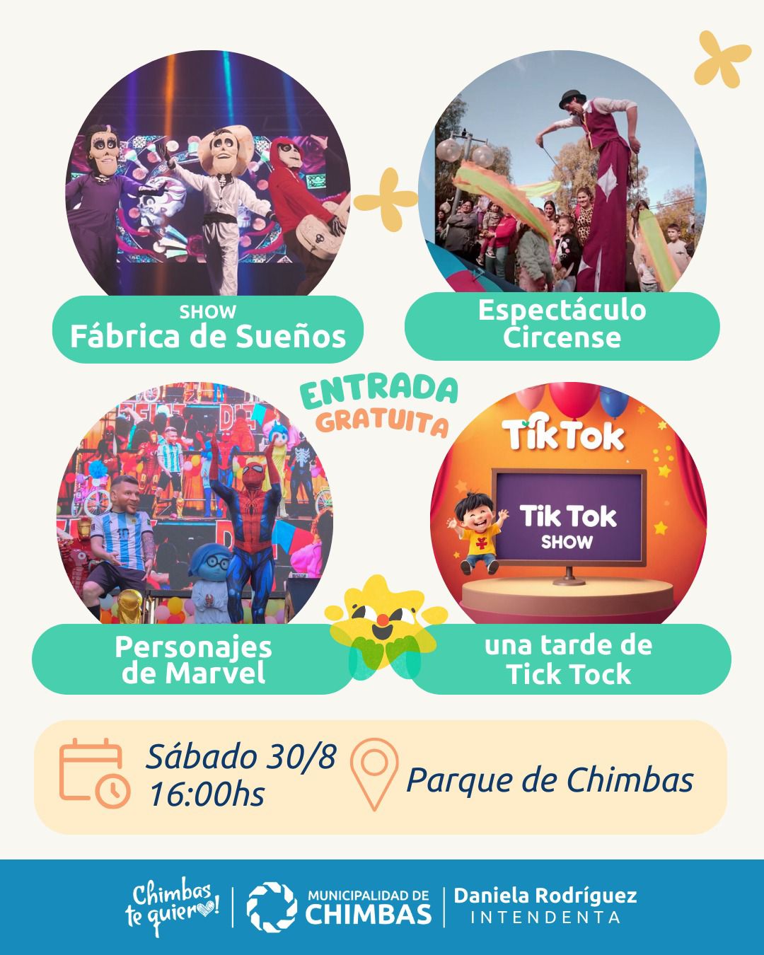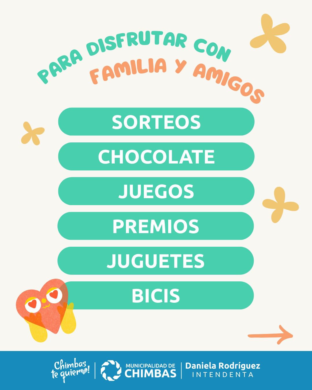 Como todos los años se realizará el gran festejo del Día del Niño, organizado por la Municipalidad de Chimbas en todo el departamento; con dos eventos, en el este y oeste, cerrando con un gran chocolate y show en el Parque de Chimbas.