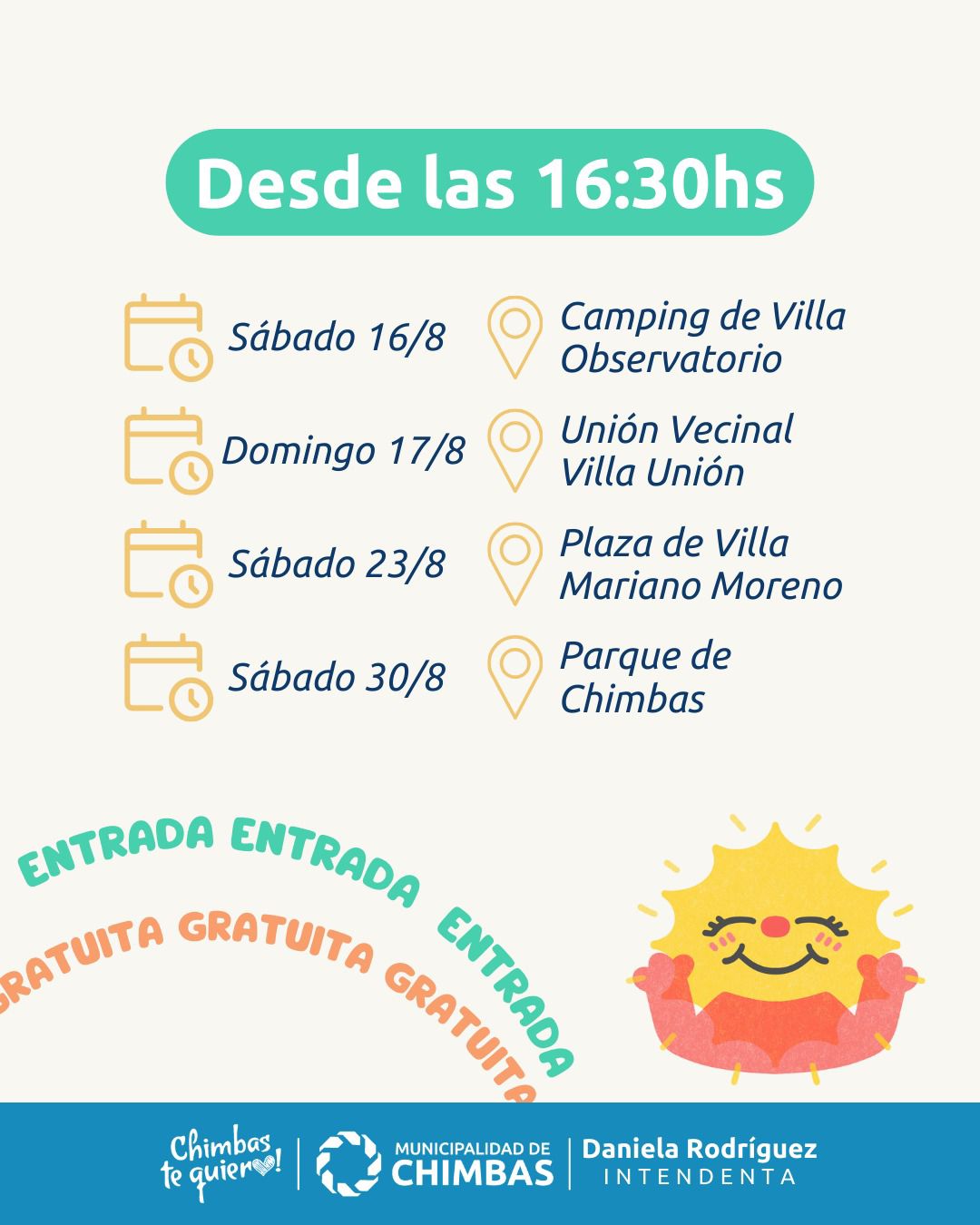 Con entrada libre y gratuita, los chimberos y chimberas podrán disfrutar de espectáculos pensados para los chicos y la familia, interactuando con juegos de kermes, juegos didácticos, actividades deportivas, shows sobre escenarios y un exquisito chocolate para todos.