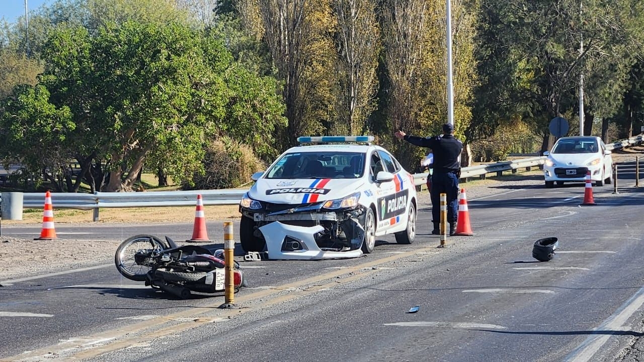 Un insólito siniestro vial se registró en la intersección de Ruta Nacional 40 y calle 18, en el sur sanjuanino, cuando una camioneta chocó contra un patrullero y su conductor escapó del lugar sin brindar asistencia ni detenerse.