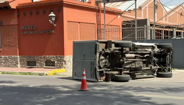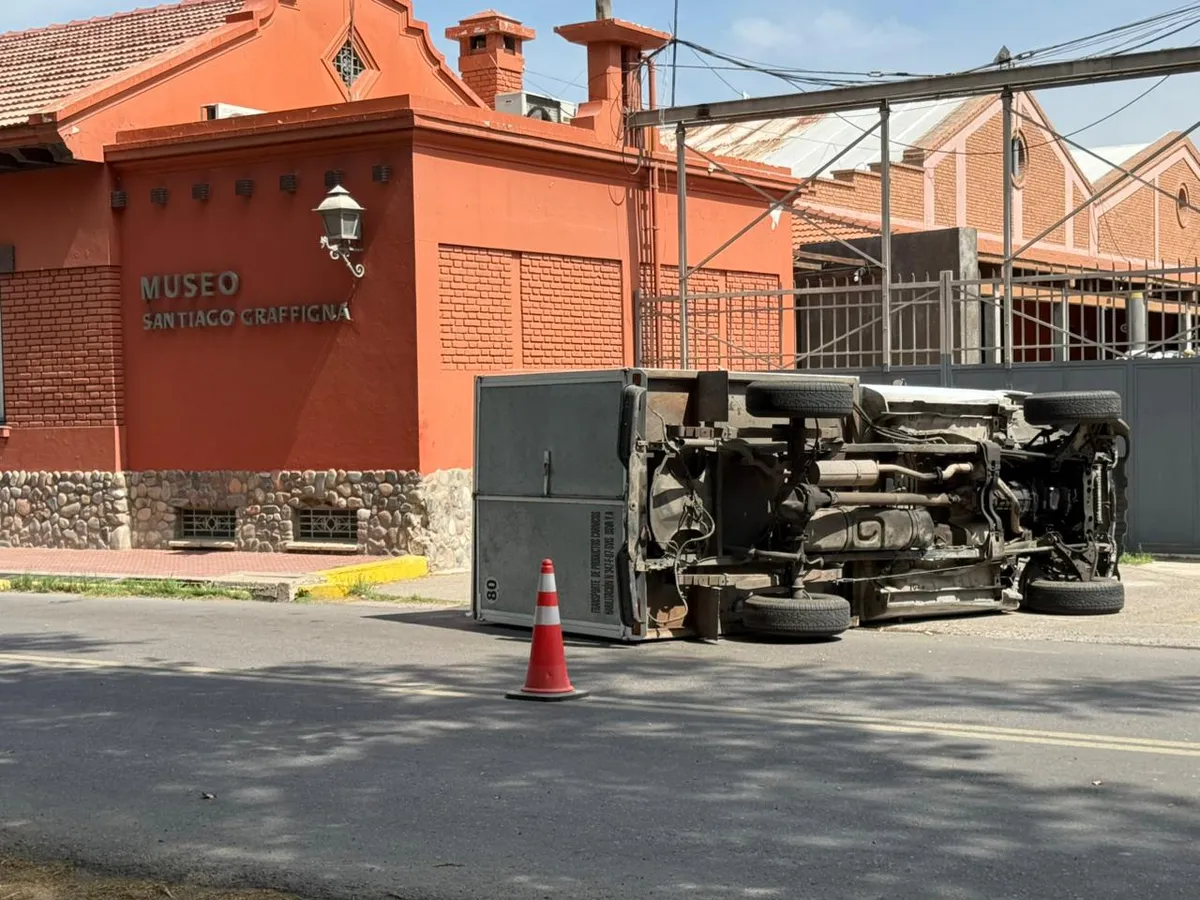 Choque entre camionetas en Capital: una terminó volcada frente a Graffigna
