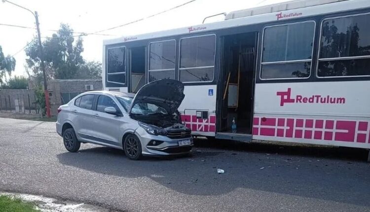 El siniestro ocurrió en la intersección de calles Jáchal y Salvador María del Carril, en Chimbas. La colisión involucró una unidad de la Red Tulum y un Fiat Cronos, con importantes daños materiales.