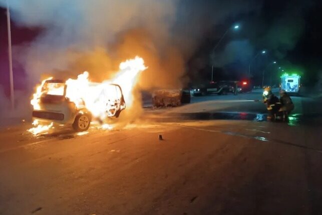 Uno de los vehículos se prendió fuego con las personas en su interior.