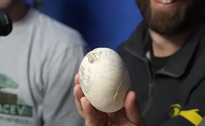 Con un halo de misterio y picardía, ya que pocos miembros del gran equipo de científicos que lleva adelante la misión sabía del hallazgo, el líder de la Expedición Cretácica I — 2025, Federico Agnolín, alzó ante la cámara un ejemplar de los huevos encontrados en un nido, preservado en muy buenas condiciones. Visiblemente emocionado, explicó que al no haber indicios de que hubiera eclosionado, es posible que en su interior se encuentren fetos de dinosaurio fosilizados.