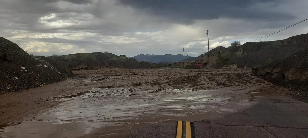 En virtud de las condiciones climáticas adversas y la bajada de creciente en la zona, se ha efectuado un corte total de la mencionada ruta en la rotonda, camino a Barreal.
