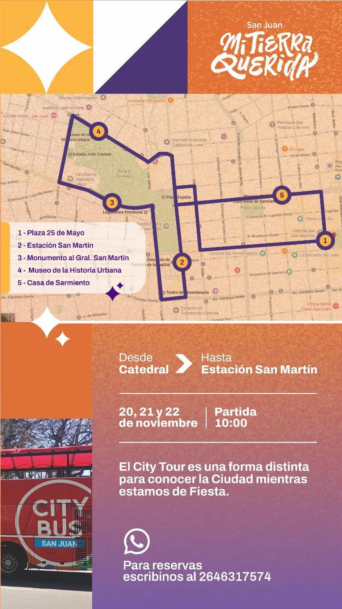 La Ciudad ofrecerá un City Tour gratuito los días 20, 21 y 22 de noviembre, con guía especializado y paradas en los principales puntos históricos y culturales en plena Fiesta del Sol.