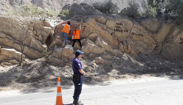 Comenzaron a limpiar grafitis en el Parque Quebrada de Zonda