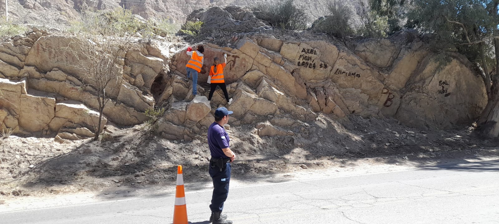 Por esa razón es que el lunes 13 y el martes 14 de octubre, se realizará la primera etapa de la tarea de arenado de los grafitis en la roca para restaurar la formación geológica Laja en la montaña, con la colaboración voluntaria de la Fundación Pro-Montaña de la Provincia de Mendoza, y ONGs de San Juan.