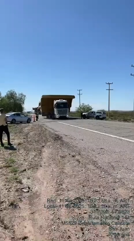Un amplio operativo de seguridad vial se desplegó este jueves en San Juan para escoltar un convoy con carga sobredimensionada destinado a la actividad minera.
