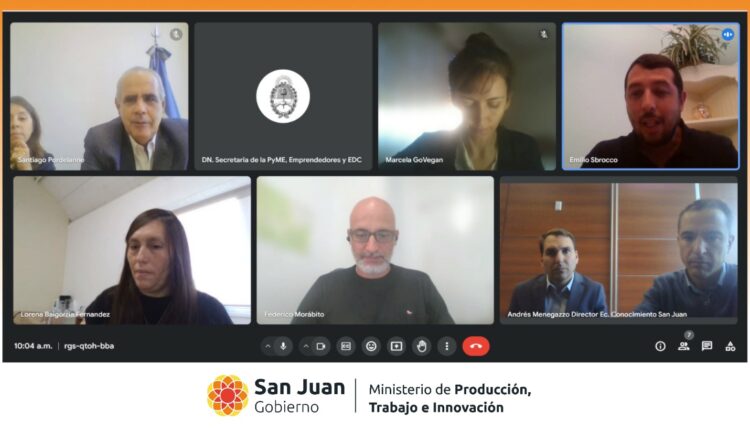 Participaron del encuentro virtual: por San Luis; Lorena Baigorria (Secretaria académica Universidad de La Punta), de Mendoza: Federico Morabito (Presidente de la Agencia Mendocina de Ciencia y Tecnología. Por San Juan: Germán Von Ew y Andrés Menegazzo. Por Nación lo hicieron Santiago Pordelanne, Subsecretario de Economía del Conocimiento de la Nación y Emilio Sbrocco, director Nacional de Fortalecimiento Regional de la Economía del Conocimiento y sus equipos de trabajo.