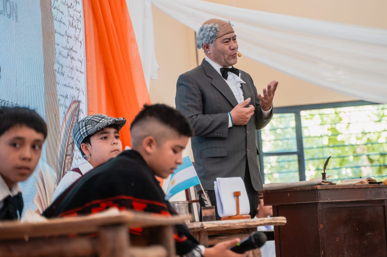 Durante el acto, estudiantes y docentes de las escuelas Presidente Avellaneda y Miguel de Cervantes realizaron una dramatización.