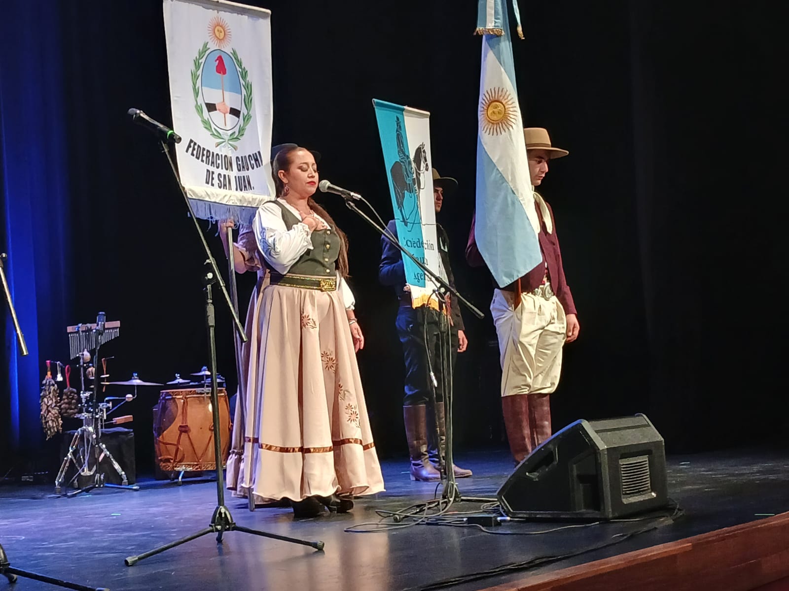 El Teatro del Bicentenario fue escenario del acto inaugural que reunió a agrupaciones gauchas, delegaciones del país y de Chile, y anticipó una convocatoria multitudinaria hacia el santuario de la Difunta Correa.