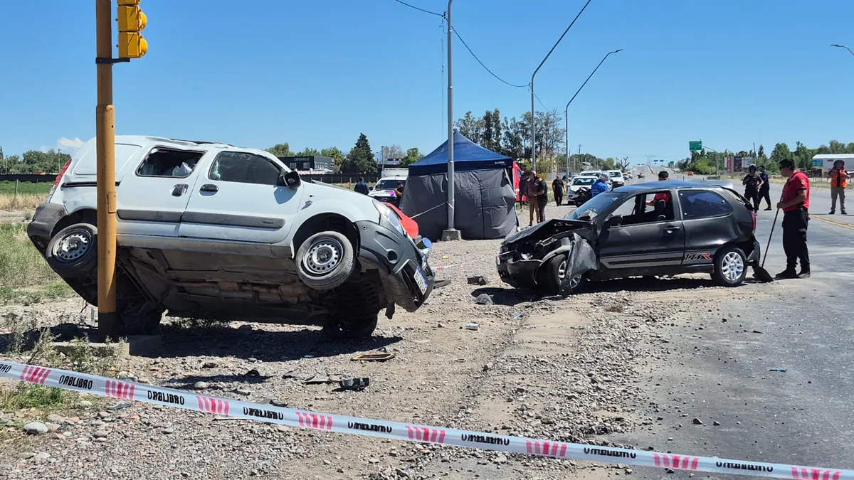 El siniestro ocurrió en una esquina semaforizada e involucró a cuatro vehículos. La violencia de la colisión dejó a una camioneta apoyada contra un semáforo, mientras que otros dos autos fueron empujados hacia un descampado. Uno de los rodados terminó con el frente destrozado.
