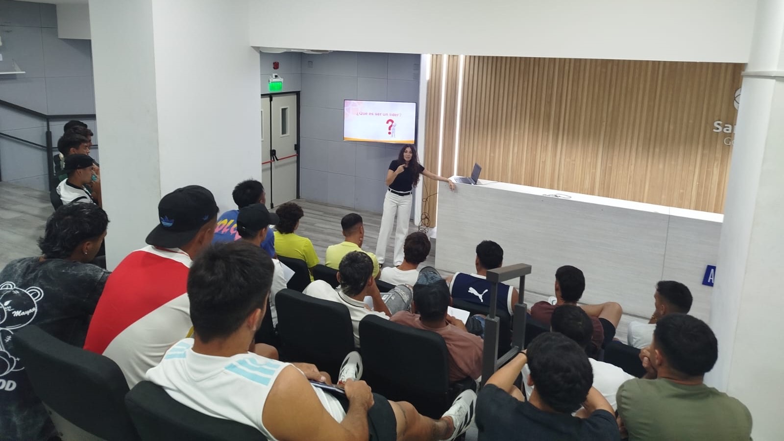 La capacitación, realizada en el Estadio Aldo Cantoni, estuvo a cargo de la Licenciada y Máster Coach Eliana Lepez y se centró en el entrenamiento mental de los futbolistas para potenciar su rendimiento dentro y fuera de la cancha.