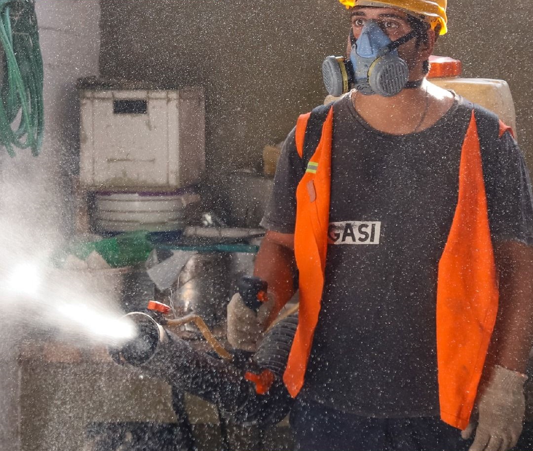 Desinsectación en el edificio de la Municipalidad de la Ciudad de San Juan, como parte del mantenimiento preventivo interno.