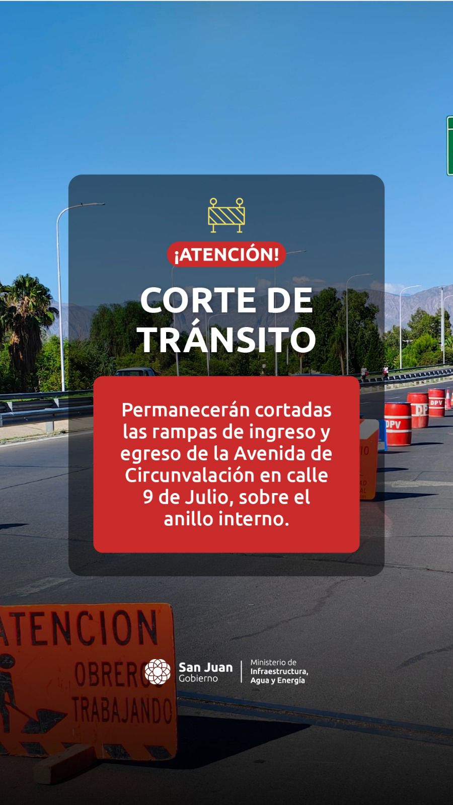 Corte total en Avenida Circunvalación por trabajos de Vialidad