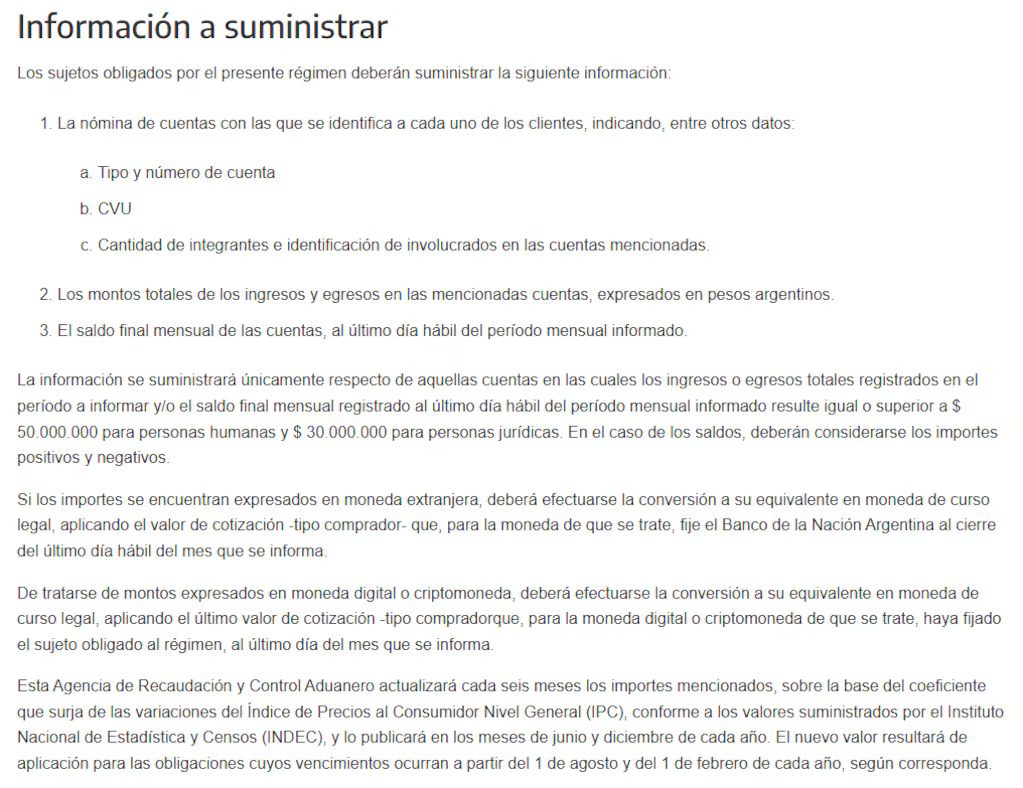 La Agencia de Recaudación y Control Aduanero (ARCA), ex AFIP, puede realizar controles durante julio de 2025 a quienes tengan un saldo mensual registrado al último día hábil del período mensual informado que resulte igual o superior a $50.000.000 para personas humanas y $30.000.000 para personas jurídicas.